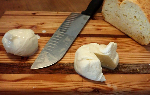 Even a little tough though, the taste of the cheese was great! We didn't cook with either the mozzarella or the burrata at all but ate it on the side with lunch. I will obviously be playing around with this again and see how it goes, but for a nice meal, it is worth the effort. For bog standard mozzarella uses though, I think I'll stick with store-bought.